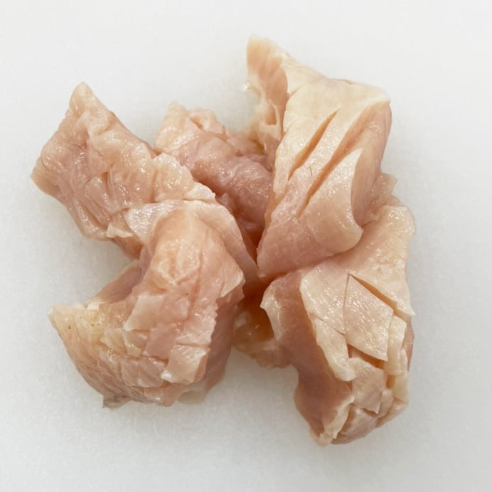 鹿の子状に切れ目入れて、一口サイズにカットしています。
